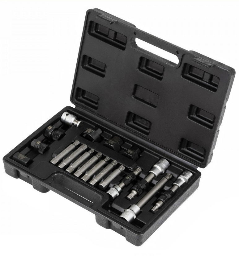 Bitek, és speciális rátűzőkulcsok válogatása egy készletben generátorok szereléséhez, a szíjtárcsák megfelelő összeillesztéséhez.