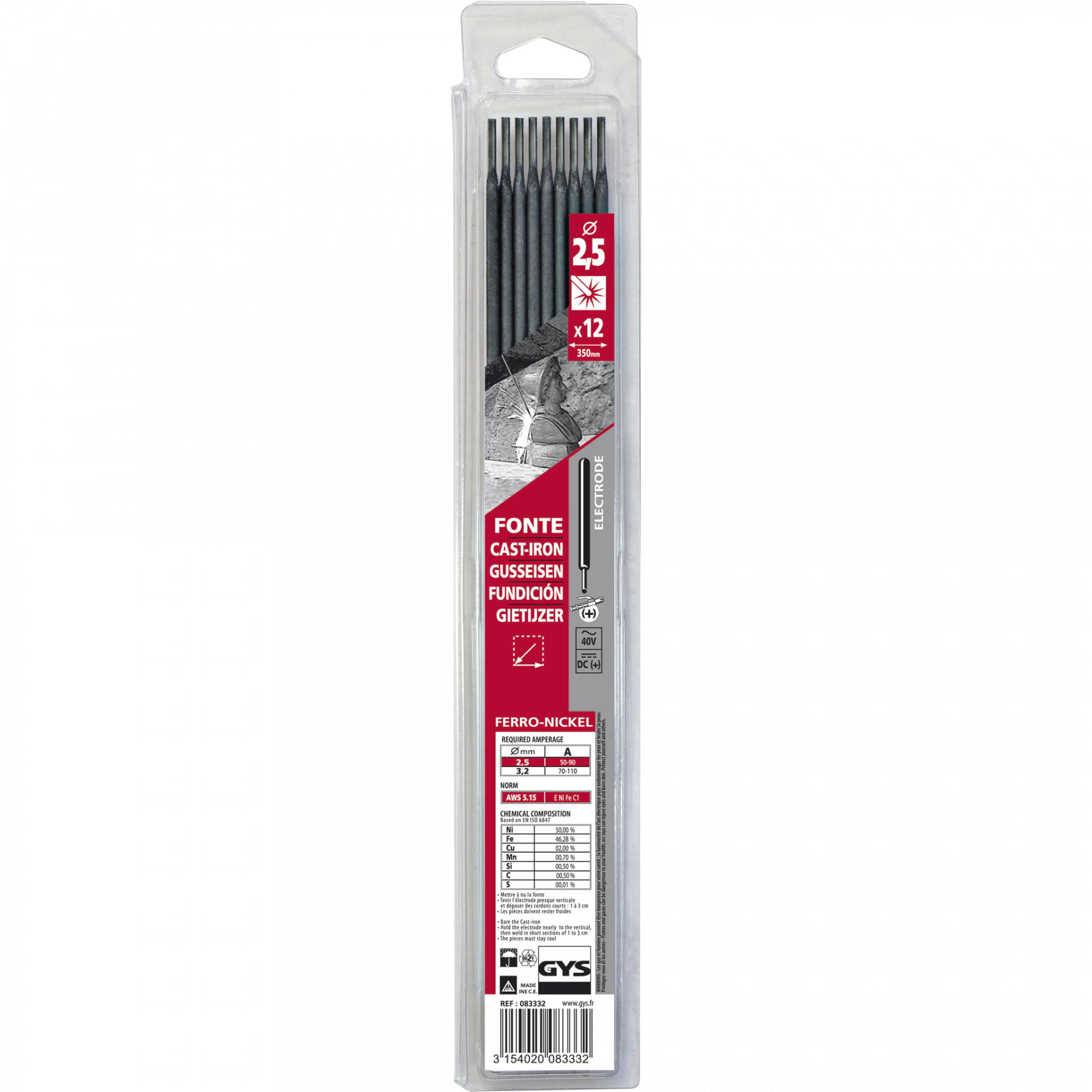 GYS FONTE öntvény hegesztő elektróda, 2.5 mm, 12 szál/csomag